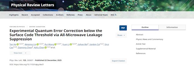 据了解,2025年,中国科学技术大学基于107比特“祖冲之3.2号”量子处理器,提出并实现了全新的“全微波量子态泄漏抑制架构”。