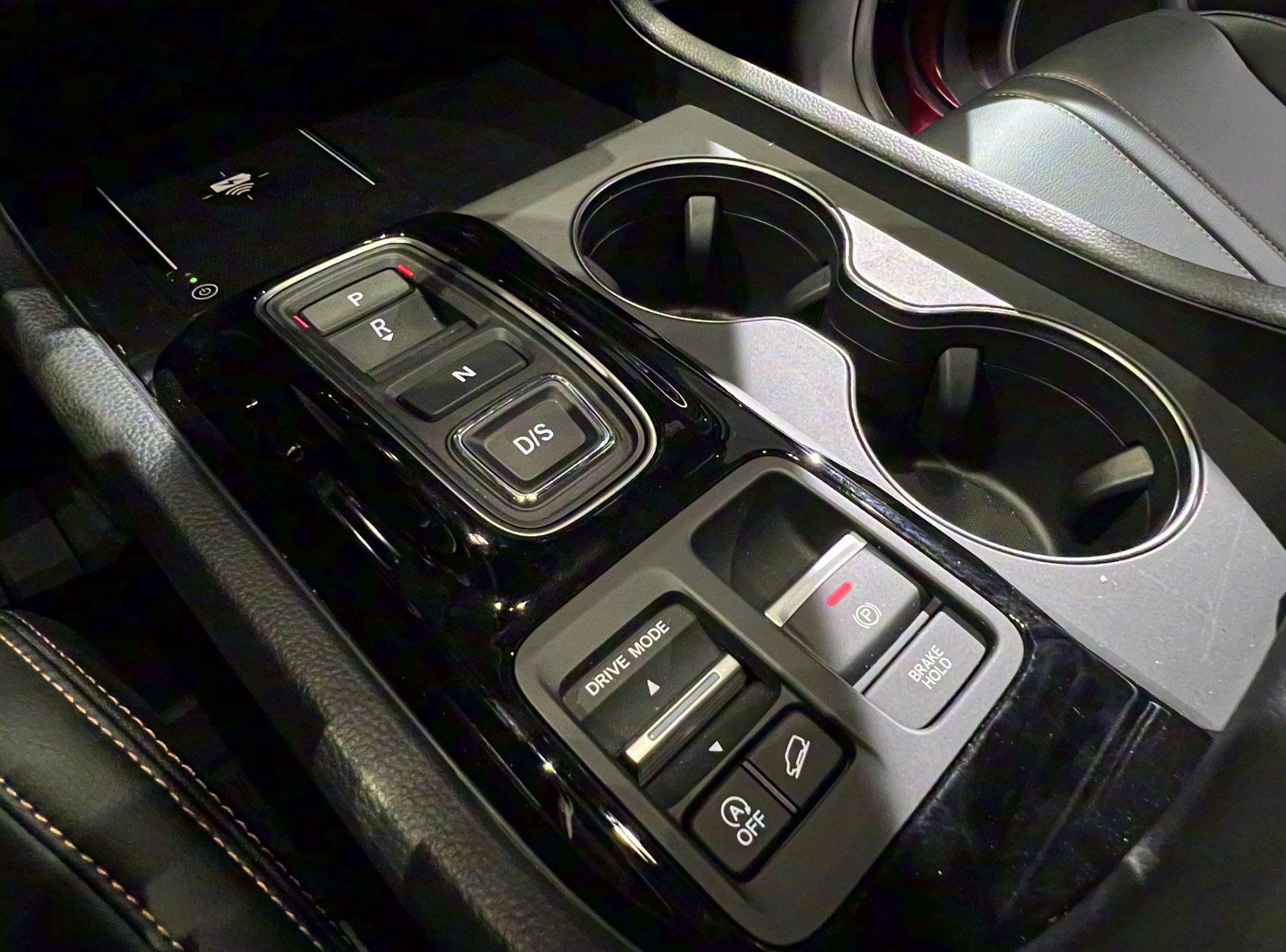 进入车内,本田新一代Pilot采用了大面积Nappa真皮材质的铺陈,还加入了亮黑色钢琴烤漆饰板,换上了造型别致的空调出风口,还保留了大量实体物理按键以及两个圆形的大尺寸空调旋钮。通过精致的红色双缝线进行无缝拼接,质感柔软、工艺上乘。标准的T字形中控台配备了经典的三辐式真皮方向盘,两侧加入了平时常用的多功能按键,还配备了两个小尺寸换挡拨片,操控岛区域加入了按键式换挡机构,并配备了两个杯架、手机无线充电,实用性配置一样都没落下。科技感方面,该车配备了10.2英寸液晶仪表盘+12.3英寸中控屏的组合,并支持无线Apple CarPlay和Android Auto手机互联、5G WiFi以及更新的驾驶辅助系统。此外,新车针对NVH也有所优化,提升车内静谧性。