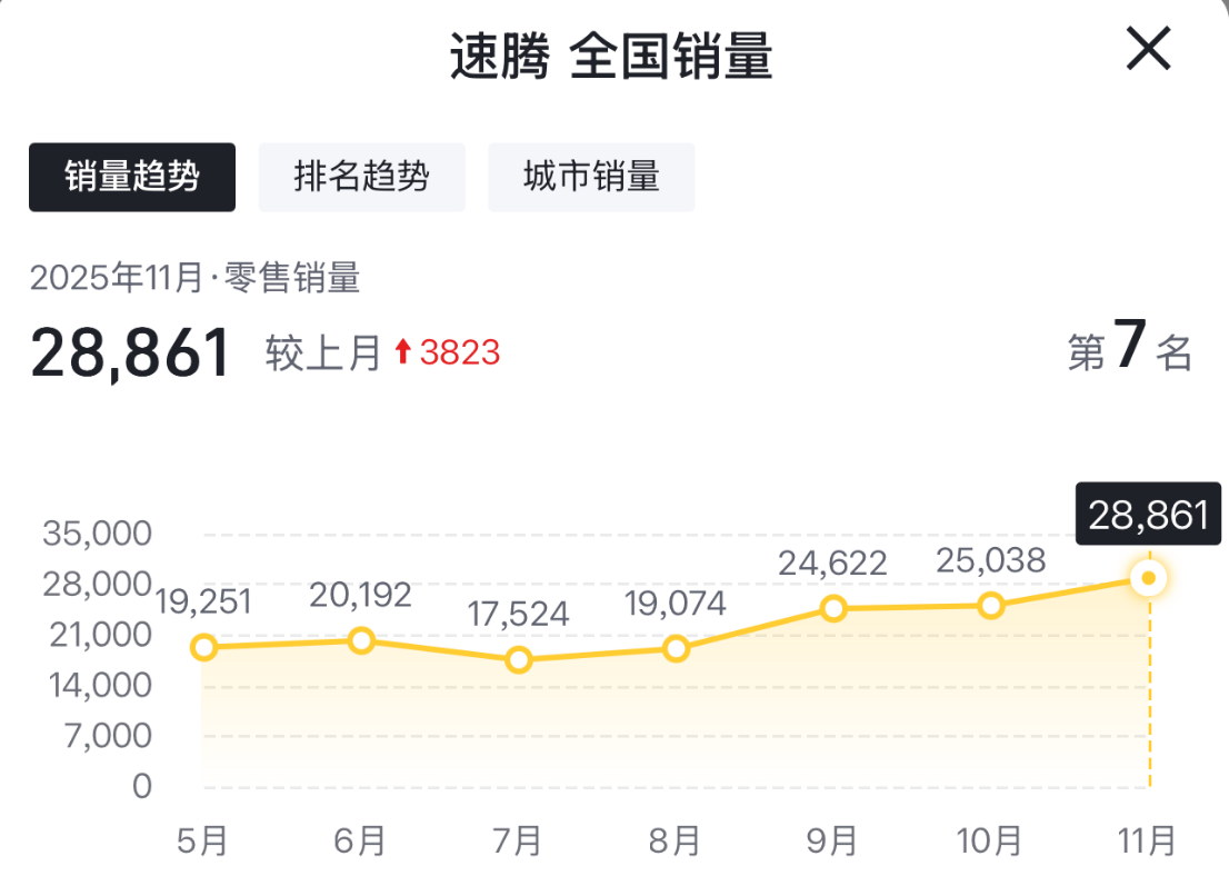 当然,这个成绩实际上是由老款速腾,和今年9月份上市的速腾L共同实现的,在速腾L上市后,这个车系的销量提升明显,从9-11月已经连续三个月超2万辆。