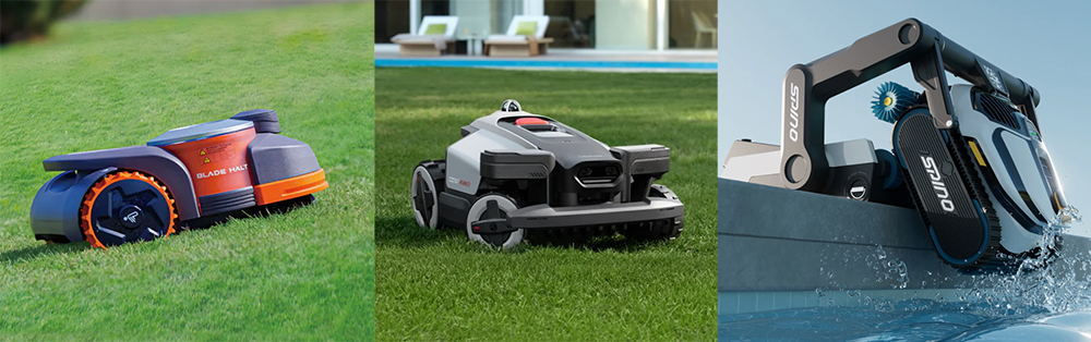 ▲九号科技、石头科技的割草机器人,库犸科技泳池机器人(从左至右)(图源:九号、石头科技、库犸科技官网)