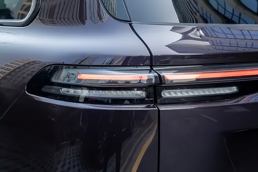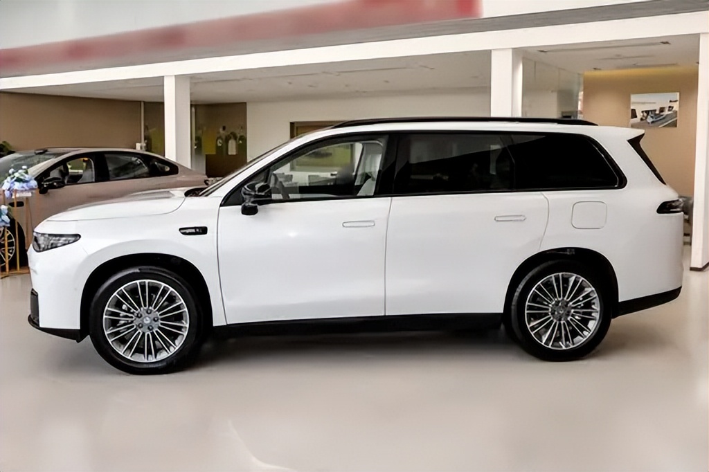 车身侧面,平直的腰线从前翼子板一直延伸至尾部,有效强化了车身的横向稳定感,也为车内空间表现打下基础。较高的车顶线条保证了三排乘客的头部空间,隐藏式门把手与低风阻轮毂在细节层面兼顾了新能源属性与能耗表现。整体来看,侧面设计并不追求视觉冲击,而是以实用与协调为核心,这种取向也更符合家庭SUV的长期使用属性。