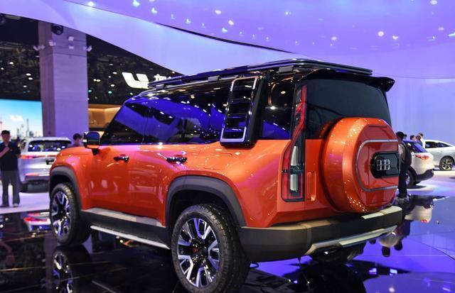 再来看车尾部分,车尾设计与前脸形成呼应,层次感丰富且功能性拉满。竖向排列的LED尾灯采用星轨式光源布局,呼应车头浑天仪设计理念,夜间点亮后如星辰排布,科技感与仪式感兼具。尾门采用侧开式设计,搭配外挂式全尺寸备胎,进一步强化硬派越野气质,备胎罩融入“通关吉印”纹理,暗藏文化巧思。后包围与前杠风格统一,金属护板延伸至车尾两侧,双边共两出式排气布局隐藏于下方,既保持线条简洁,又彰显动力底气。