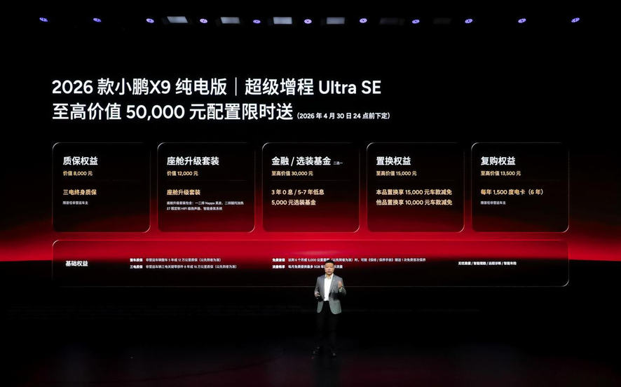 与第二代VLA同步登场的2026款小鹏X9纯电版,以“两种动力,同一个旗舰标准”,重新定义高端家用大七座。新车推出5款纯电版型与1款增程新版型,售价30.98万元起,产品力全面对齐超级增程版,实现“全能无短板”。