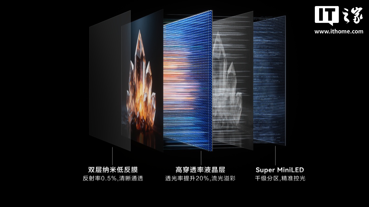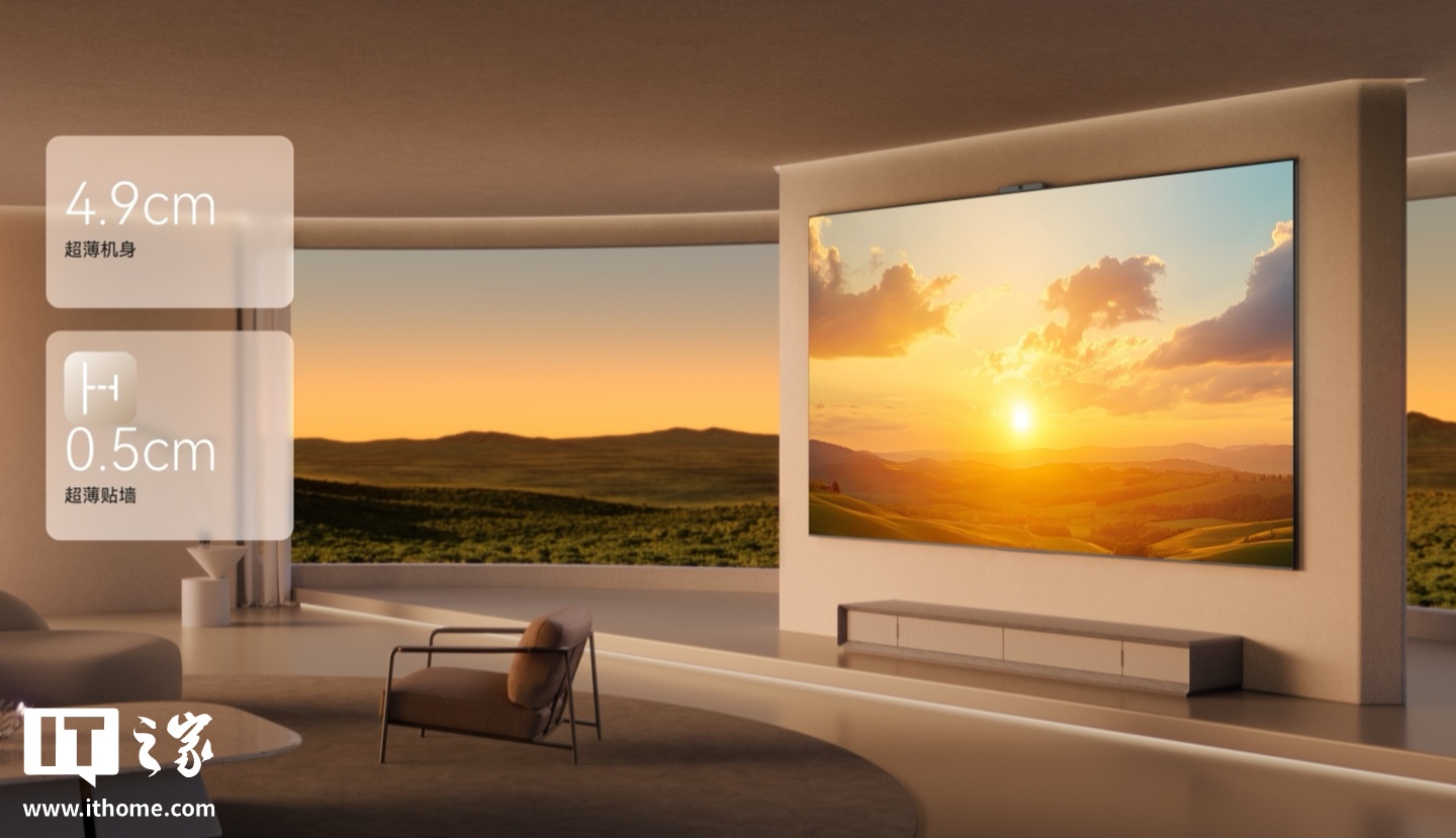 据介绍,华为智慧屏 S7 Pro 搭载 Super MiniLED 黑晶屏,支持 10.7 亿色、2000nit 峰值亮度,分辨率达 3840×2160,拥有 99.0% 屏占比 + 178°(典型值)可视角度,可实现 288Hz 倍频刷新率、超薄零贴墙效果。