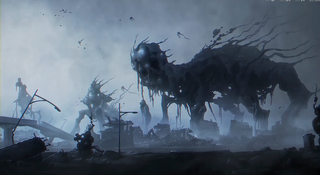 游戏整体采用了低饱和度的暗黑系画风,一些敌人、场景设计颇有种H·R·吉格尔的超现实主义风格,其虽然没有照搬吉格尔的生物机械美学,但《卡厄思梦境》将触手、黑雾以及肉体恐怖元素等非常克系的视觉符号大量编织进包括敌人设计、技能表现中的视觉策略,确实让游戏的怪物造型和场景有着《死灵之书》的观感。