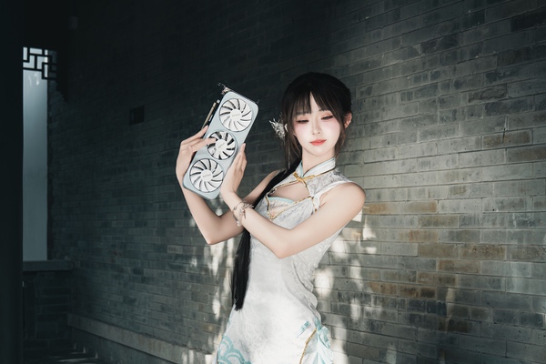 显卡外壳用珠光变彩工艺呈现出独特的质感,配合淡淡的清冷色调和古典云纹点缀,整体设计素雅高级、回味无穷。散热系统采用三风扇设计,辅以3根镀镍热管和镜面铜底,确保在高负载下依然保持优异的温度表现,静音与散热兼顾。