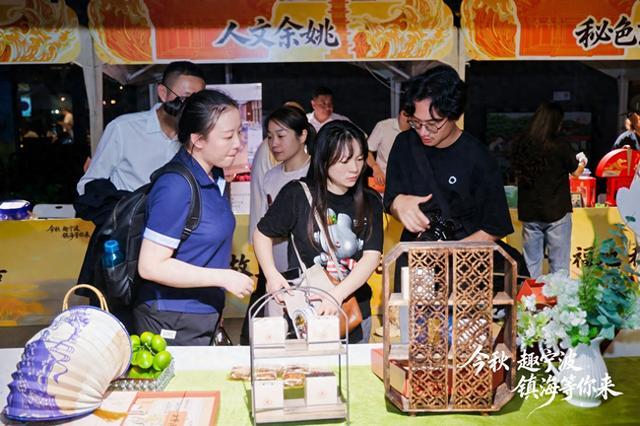 与启动仪式同步开启的文旅秋日市集,迅速成为全场最具烟火气的“打卡地”。“宁波月饼大赏”展台前,百余种本土月饼同台竞技,香气氤氲着宁波人的中秋记忆;月饼DIY制作及盲盒互动深受孩子们喜爱,“我与宁波的金秋击个掌”互动打卡点前也是人头攒动——摇响铃铛,就能收获一份随机“秋叶文创礼品”,而农产品堆叠而成的秋景美陈,更将“今秋・趣宁波”氛围感拉满。