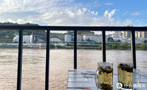 在黄河边吹吹风,喝喝茶,看了一场漂亮的日落。