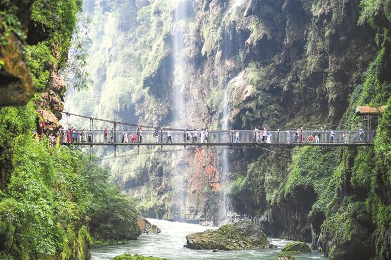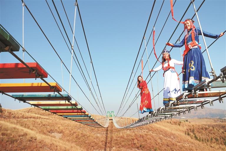 游客在放马坪景区体验步步惊心项目。 (景区供图)
