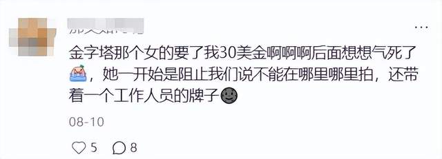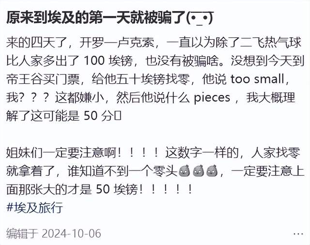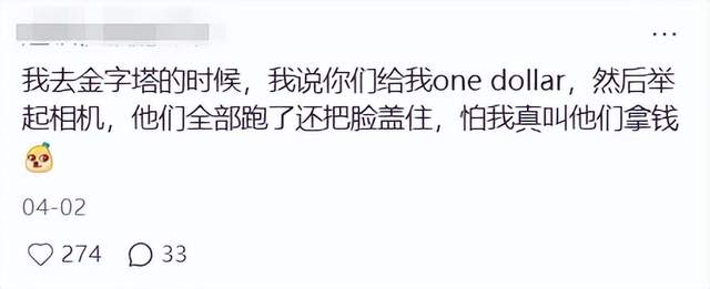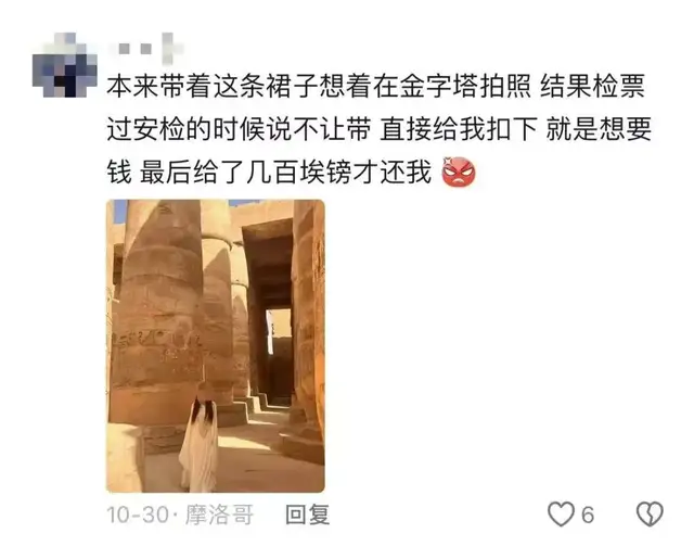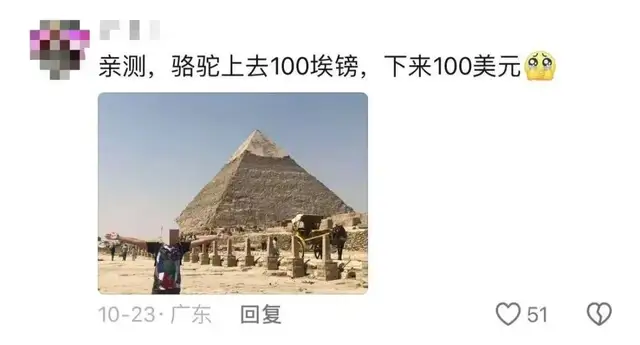 而很多人的烦躁在于,明明自己是带着善意的预期来的,却被这种低劣的骗局消耗了情绪,好像自己只是埃及人眼里行走的钱包。