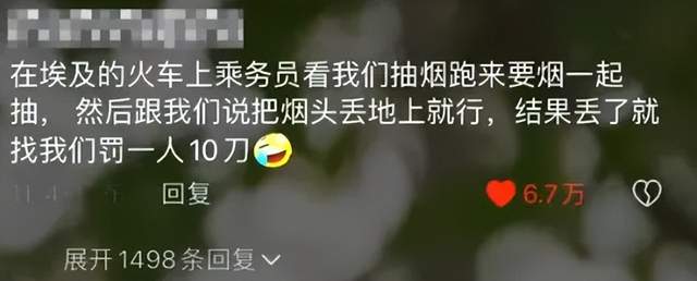 你在火车上抽烟,乘务员不会阻止你,还会友好地加入,等大家抽完把烟头往地上扔的时候,他就拍拍衣服站了起来,收1人10刀的罚金。