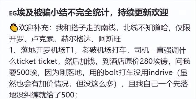 有人总结自己在埃及被骗的经历,林林总总凑出来快二十条,当当不一样。