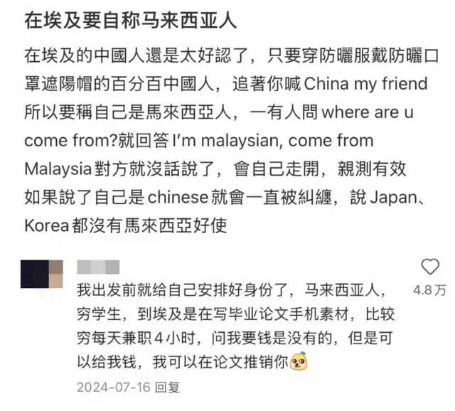假装日韩人士,可能因为翻译而露馅,但装成马来人就没这个困扰了,因为他们也讲汉语。