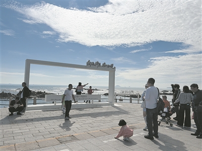 在青岛极地海洋公园一带的海滨,精心布置的打卡画框与面朝大海的秋千,成了游人驻足流连的好去处。伴随光影流转,游客们纷纷用镜头定格美好瞬间,海面波光粼粼的景致,也一同被纳入这份独特的季节记忆中。