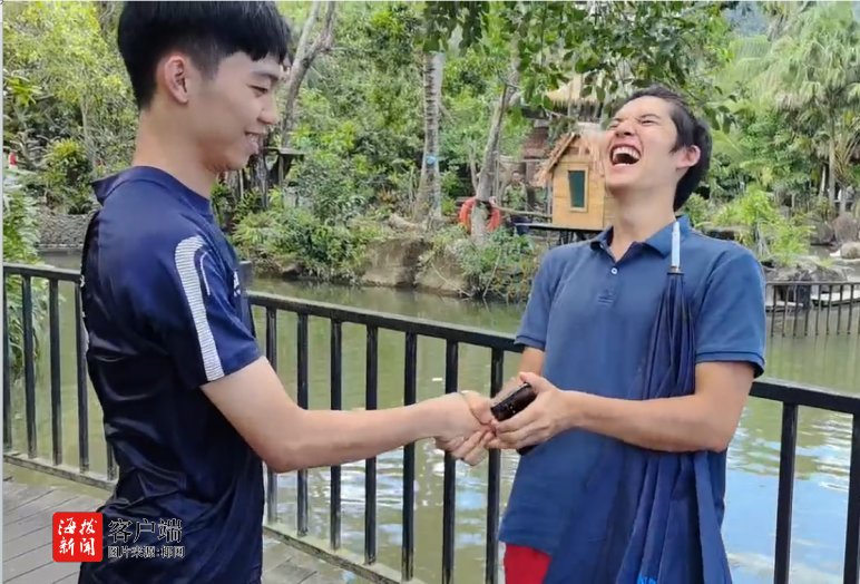 商报全媒体讯(椰网/海拔新闻记者 张艺)“手机找回来了!感谢你们!”10月19日,在海南呀诺达雨林文化旅游区,俄罗斯游客伊万左手拿着刚从水里捞起的手机,右手紧紧攥着景区教练李俊翔的手连声道谢。