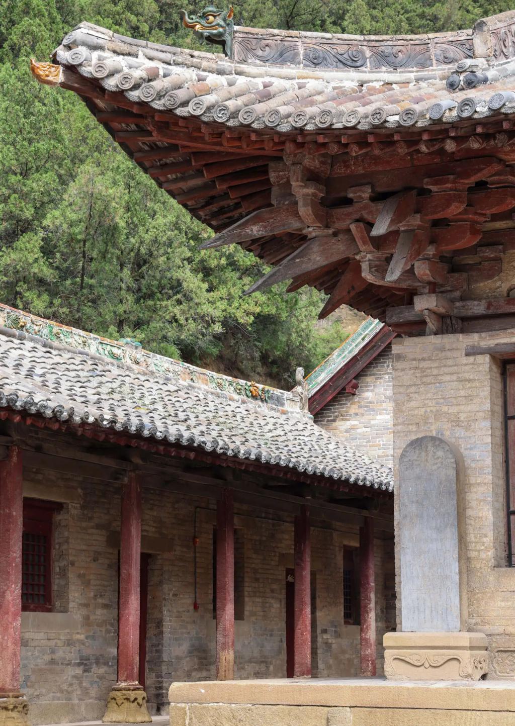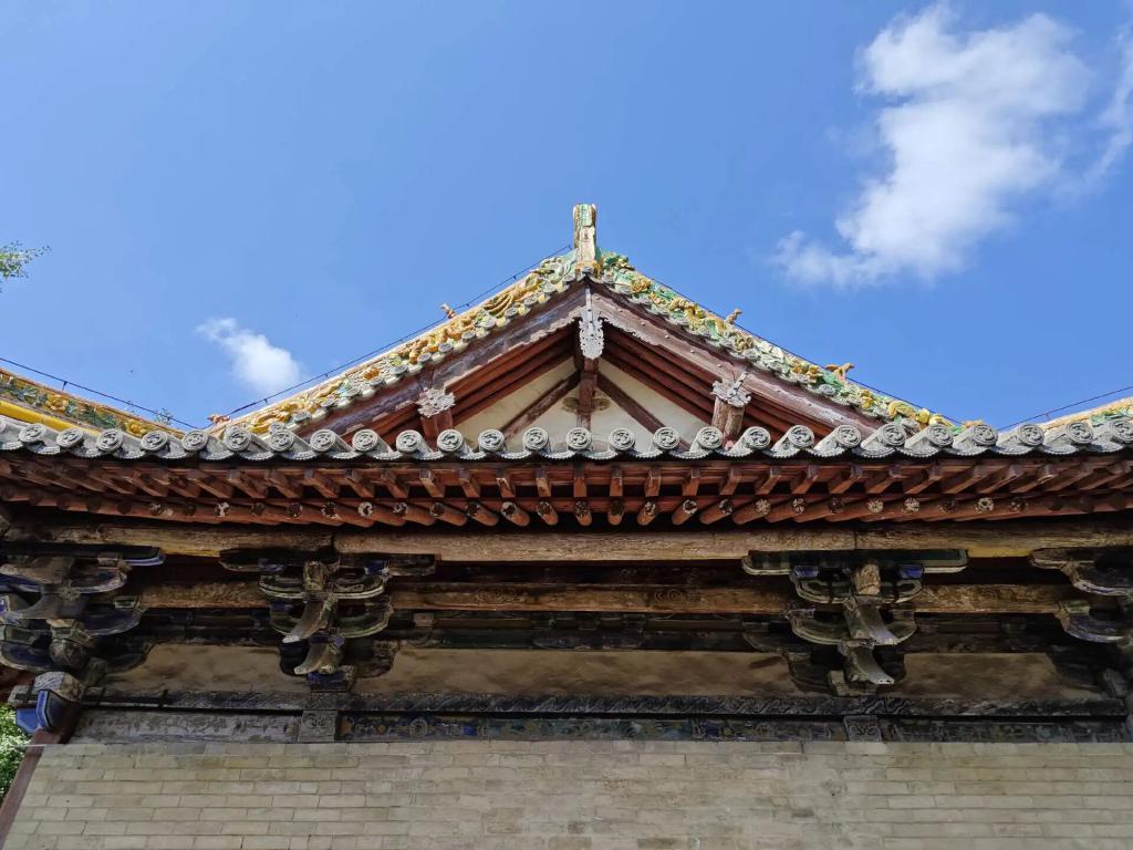 走进山门,迎面而来的就是雷音殿,看起来很小,但是却是元代建筑,梁架结构还带有宋代遗风,屋顶金碧辉煌的琉璃脊饰是金代的原作。