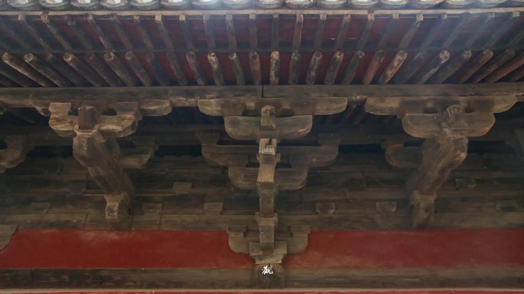 走近殿内,虽然已经没有壁画和彩塑留存下来,但是当你抬头望去,密集的梁架结构,带着早期建筑的古朴美感迎面而来。