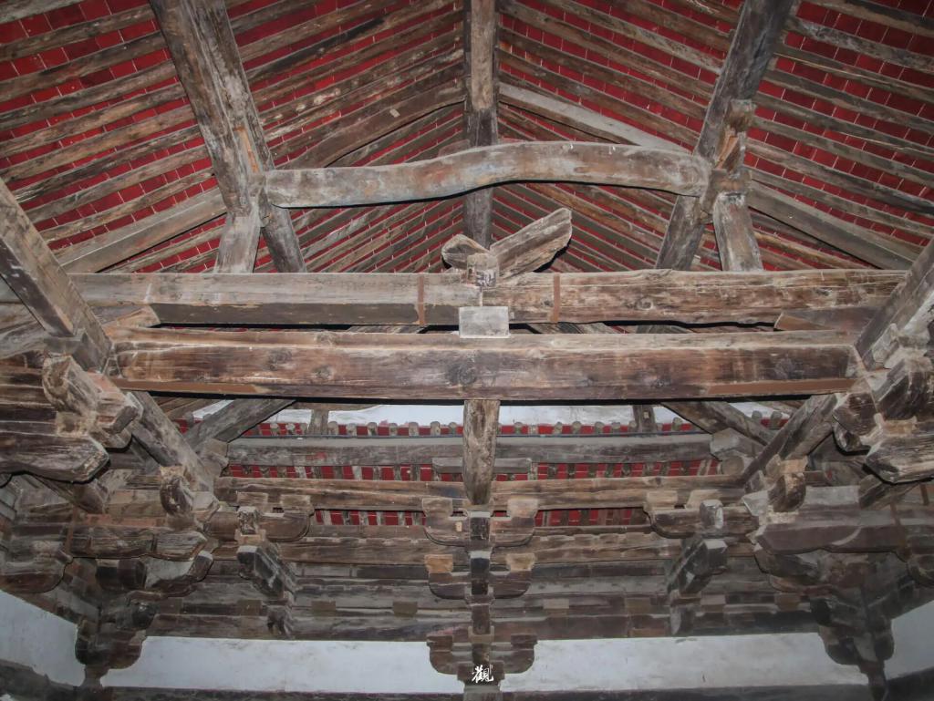 基本没有后世常见的梁枋横穿前后场的“大横梁”,而更接近金宋时期称作“乐亭”“舞亭”的早期戏楼结构。