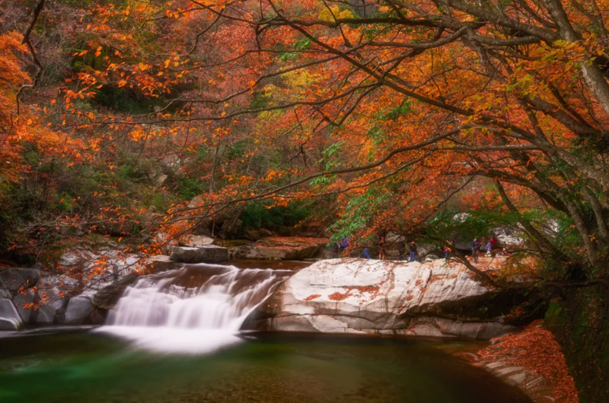 中国红叶第一山,层林尽染的山林,火红的枫叶与清澈碧绿的潭水交相辉映,将如诗如画秋日胜景尽收眼底,令人沉醉其中。