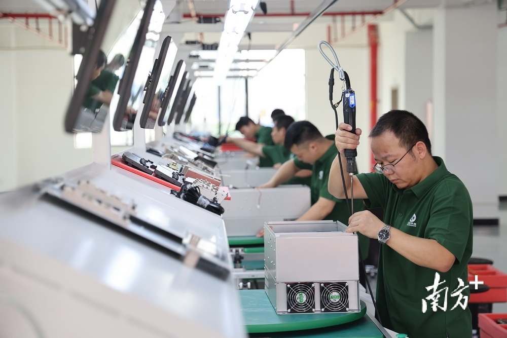 泓慧能源正谋划联合大涌镇招引储能材料、SST生产、数据中心等上下游企业。图为泓慧能源生产线。 南方+ 叶志文 拍摄