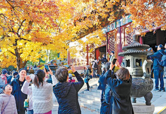 本报讯(记者 张骜)深秋时节,潭柘寺景区内享有“帝王树”美誉的千年古银杏迎来最佳观赏期。景区依托这一独特生态资源,创新推出“文化+体验+助农”三位一体的文旅融合模式,为游客带来多元化体验的同时,有效带动了当地产业发展。