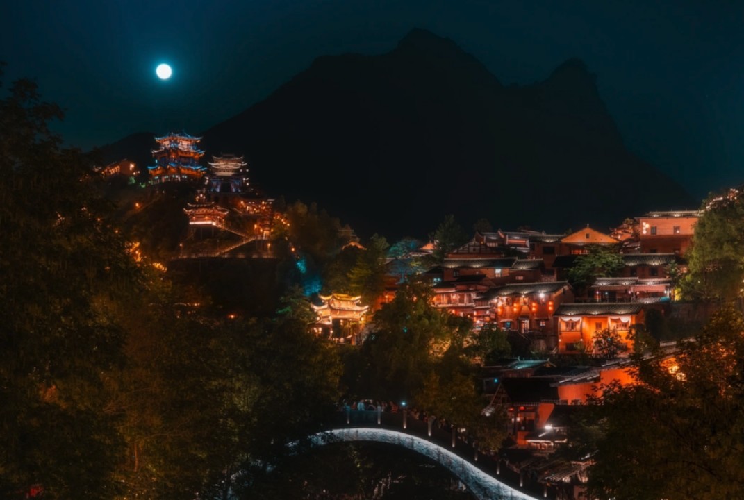 夜幕降临才是望仙谷真正的高光时刻。18:30起灯光渐次亮起,悬崖民宿如星辰缀于峭壁,无人机从山谷中央升起,能拍出电影级别的全景画面。20点篝火晚会点燃广场,游客可参与竹竿舞互动;21点后酒吧街微醺开启,一杯杨梅酒配山风,惬意十足。住宿可选景区内特色民宿,也可住山脚小镇,性价比更高且提供接送。记得穿防滑鞋、带薄外套,避开节假日高峰,才能真正沉浸在这座“现实版仙侠世界”的昼夜流转之中。文章内图片来源@放映爱拍照