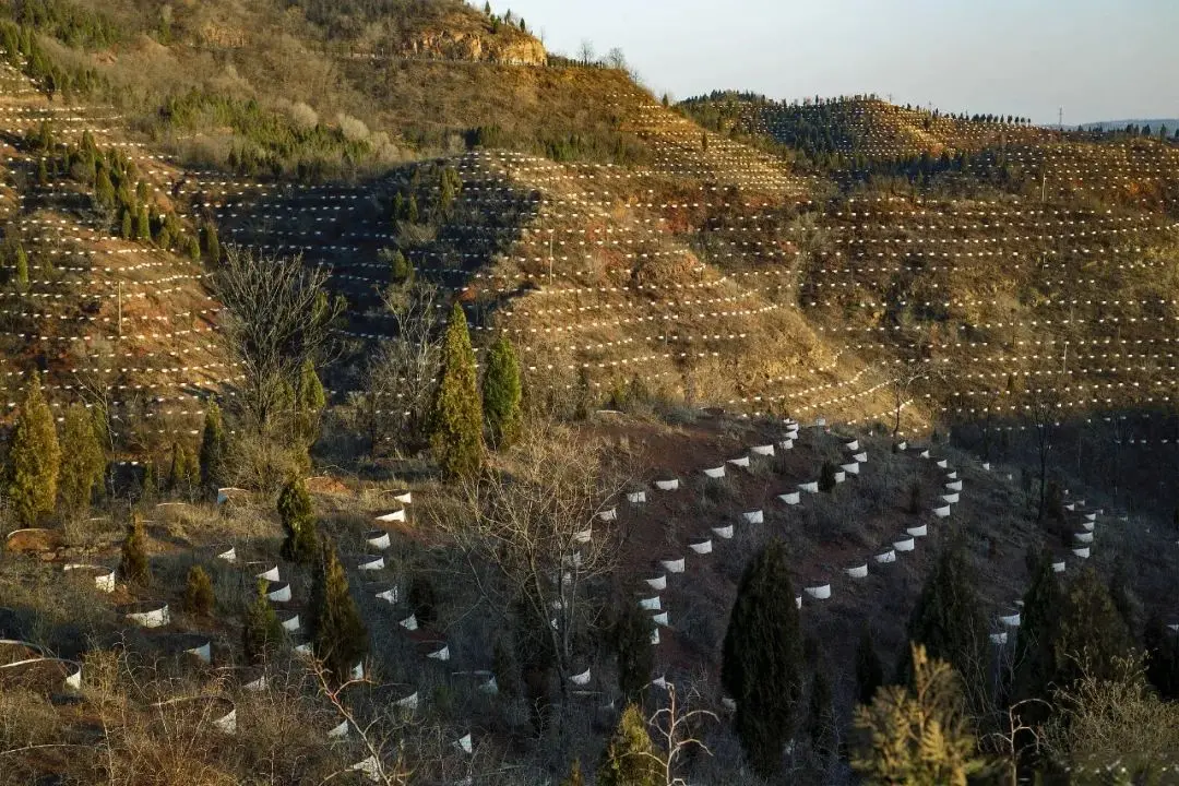为了治理黄土高原,人们想到了一系列巧妙的设计,将山上流失下来的水土拦截在沟里的淤地坝,为了能在高山陡坡上种树而垒成一个个鱼鳞形状树坑的鱼鳞坑,以及将原本倾斜的山坡变成台阶状的旱作梯田。