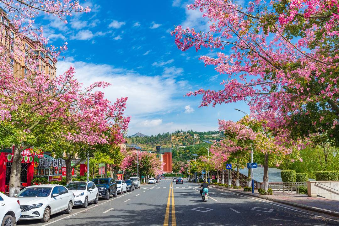 仁和区街头盛开的异木棉 石磊摄