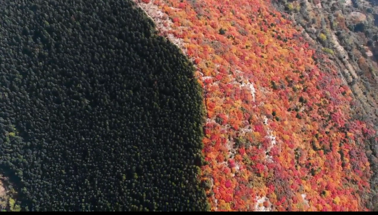 蝎子山坐落于济南市市中区南部,形似翘尾蝎子静卧城市脉络,因独特的地理条件与植被分布造就了罕见景观:北坡松柏叠翠常青,南坡黄栌经秋染赤,山脊天然划界形成“一山双色”的视觉盛宴,航拍视角下宛如一锅煮沸的秋日“鸳鸯锅”,每一帧都堪称壁纸。作为免费开放的城市山体公园,这里不仅是市民休闲徒步的优选地,更因《中国国家地理》的推荐吸引了大批外地游客,目前正处于10月下旬至11月中旬的最佳观赏期,山间红叶正盛,景致蔚为壮观。