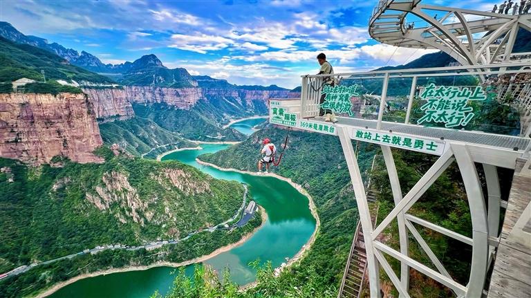 游客在宝泉旅游区体验“窝囊蹦极”。 冯汉斌 摄