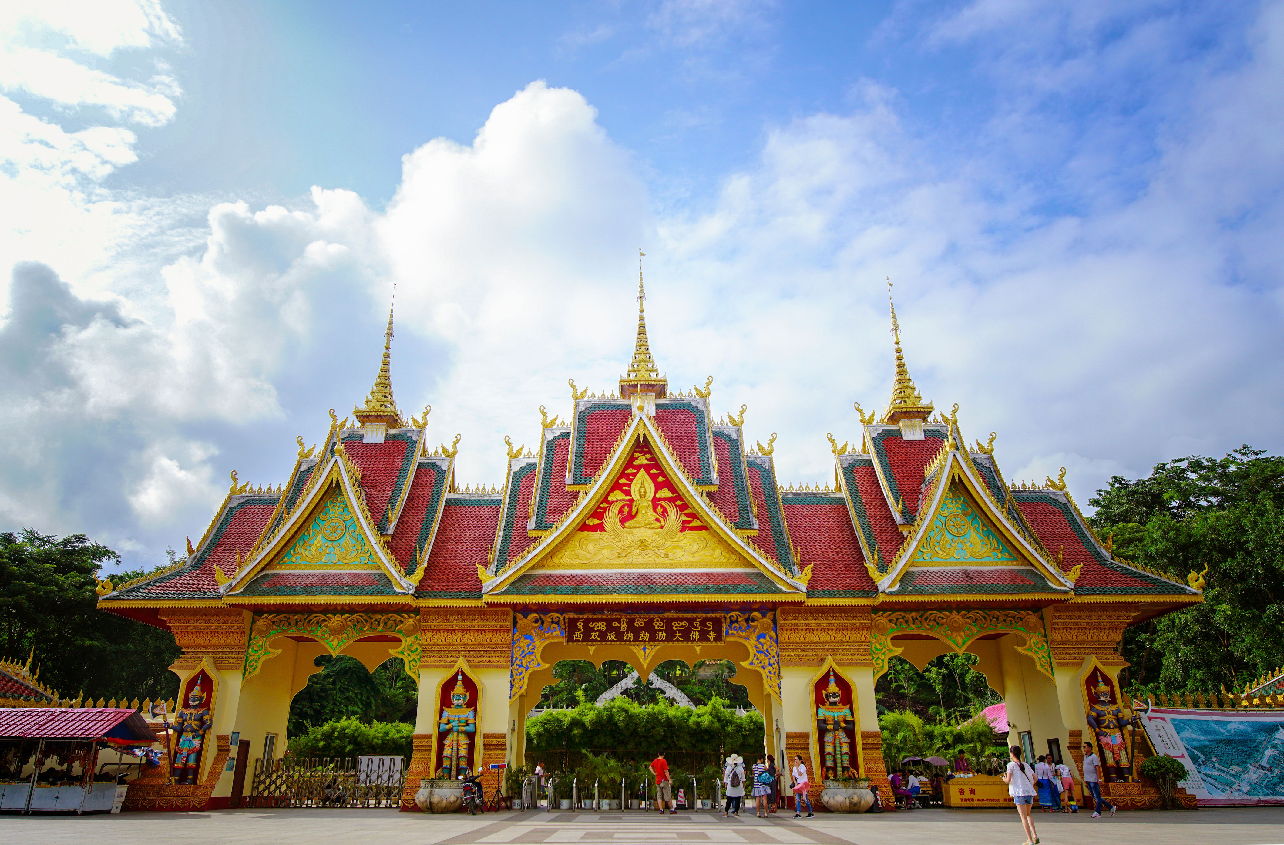 西双版纳等级最高、历史最悠久的佛寺之一,也被誉为南传佛教第一寺,寺庙建筑雄伟大气,整体建筑为傣泰宫殿式风格,以金黄色为主调,目之所及是雕刻精美的梁柱,精美绝伦的佛像,还有在阳光下熠熠生辉的金顶。总佛寺的风景超级美,满满的热带风情,拍照打卡也很出片!