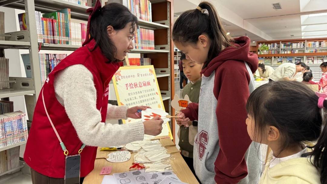 随后的“灵感接龙:共创秋日故事《风与落叶成为了好朋友》”环节,孩子们一人一句接力创作,将想象力融入文字。“秋语拼接:文字里的秋意”环节,孩子们把与“秋”相关的纸条,拼贴成句子粘贴在展板上,创作出秋日主题手帐。“艺术创作:手绘秋意扇面”环节更是将活动氛围推向高潮,孩子们用手中的画笔,在扇面上创作出一幅幅秋日美景。