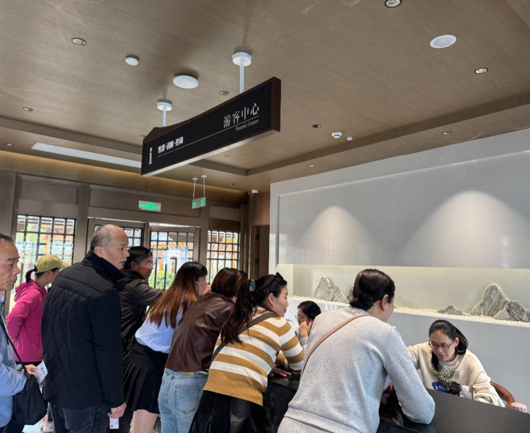 “上午本来九点开放的,今天八点四十就开始陆续售票了。”陆游故里游客中心工作人员徐女士一边快速整理着门票,一边告诉记者:“今天很忙,没闲下来过,上午的时候购票队伍排到了大门外。”