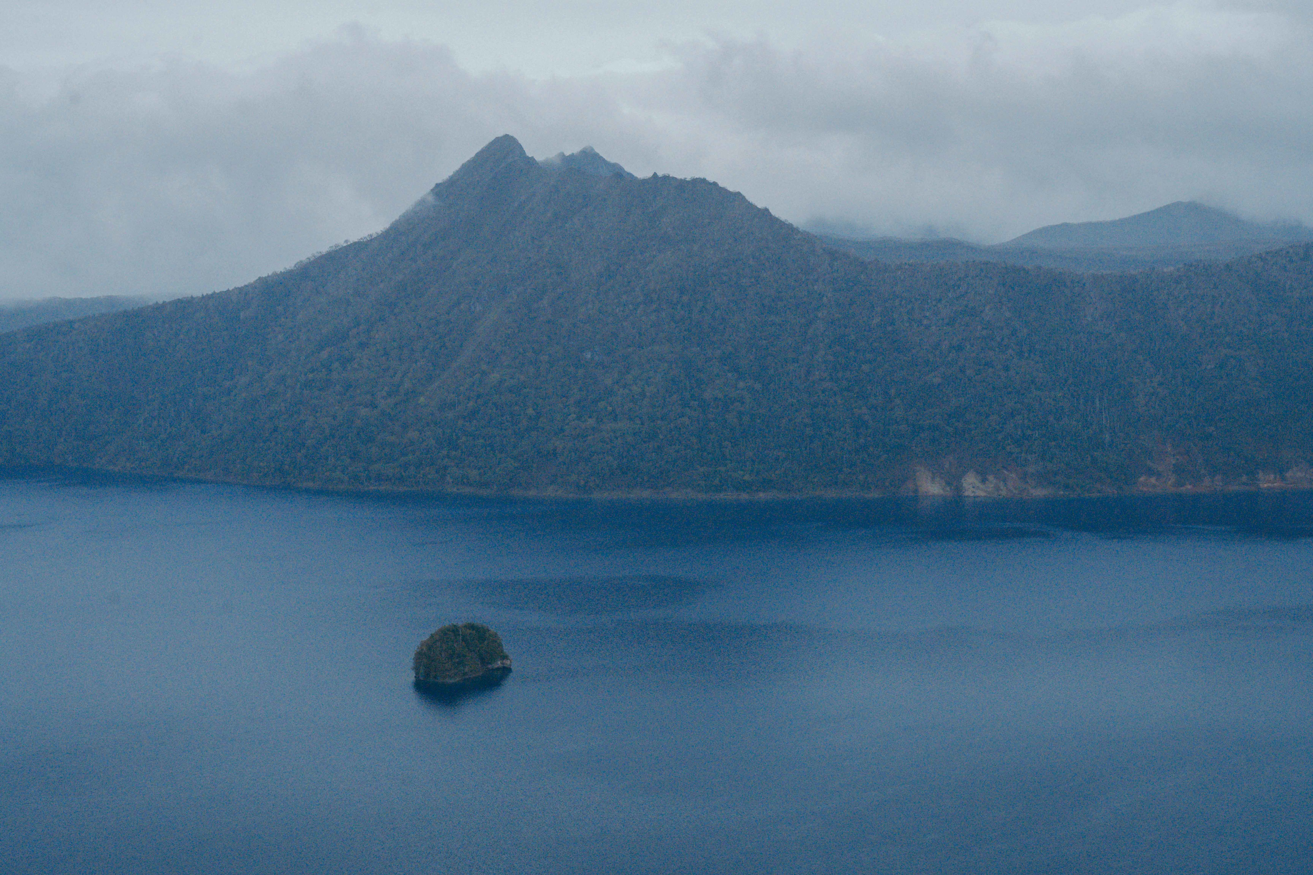 这次抵达摩周湖时,天气也并不理想。天空笼着厚厚的云层,阳光被完全遮住,湖面呈现出一种深沉的蓝灰色。