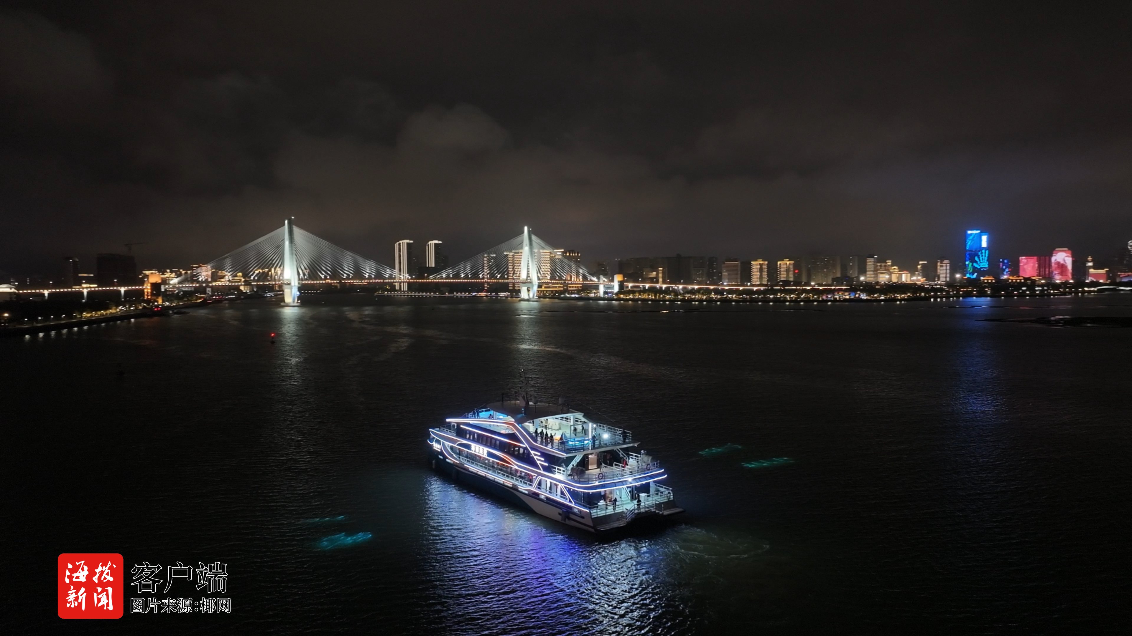如今,在海口湾乘坐游艇,市民游客百元内即可解锁“海上观景”“海上老爸茶”的新体验。观光游船串联起世纪大桥、东坡老码头商业街、天空之山等网红打卡点,360°观景台让游客直呼过瘾,船上还有萨克斯演奏、KTV等丰富服务,氛围感拉满。