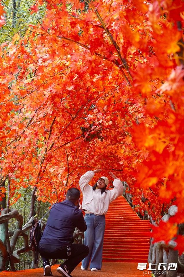长沙晚报掌上长沙11月19日讯(全媒体记者 贺文兵)初冬的长沙石燕湖景区,一条精心打造的“红枫+银杏隧道”凭借饱满的视觉碰撞与童话般的场景氛围,迅速刷屏社交平台,成为长沙这个季节网红打卡地。