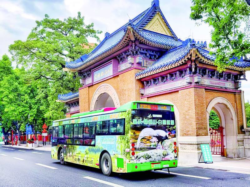 星湖旅游巴士在广州形成一道流动的风景。受访单位供图