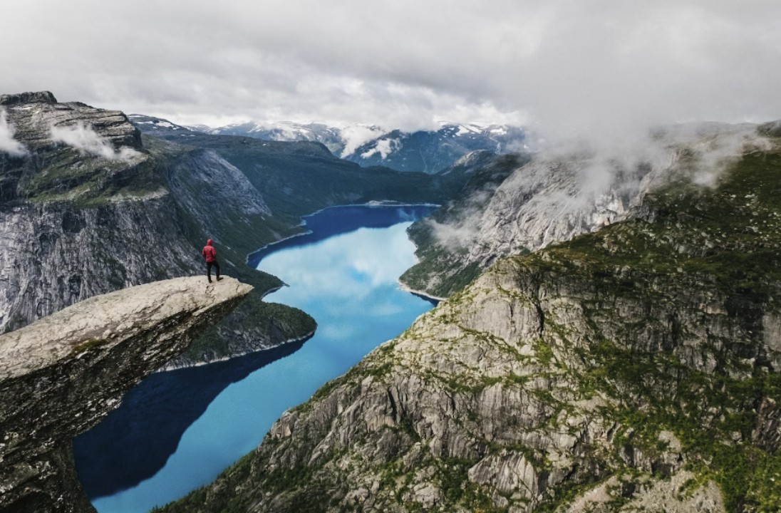 恶魔之舌位于挪威奥达附近,是一块悬空于山谷之上的巨大岩石,形状像一个伸出的舌头。这块岩石位于海拔1,100米的高度,俯瞰着下方的吕瑟峡湾。恶魔之舌不仅是徒步旅行者的热门目的地,也是摄影师们捕捉壮丽自然风光的绝佳地点。尽管攀登过程较为艰难,但一旦到达顶部,你将被眼前的美景所震撼。
