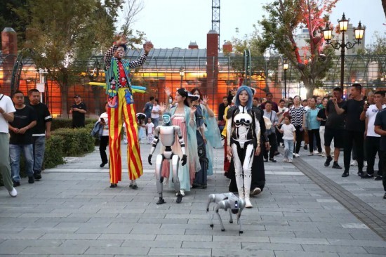 在保留历史韵味的同时,街区引入智能AI机器人互动、高科技机器狗表演等现代科技项目,为老街增添了新趣味。会打招呼的智能机器人、灵活翻腾的机器狗,还有在空中翩翩起舞的威亚表演,都成了年轻人朋友圈里的常客。这些新奇的体验让游客们眼前一亮,特别是小孩子们,总是围着机器人舍不得离开。在这些热闹的背后,公安、消防等部门实时巡逻、属地铁北街道的人流疏导,让市民在欢乐中倍感安心。