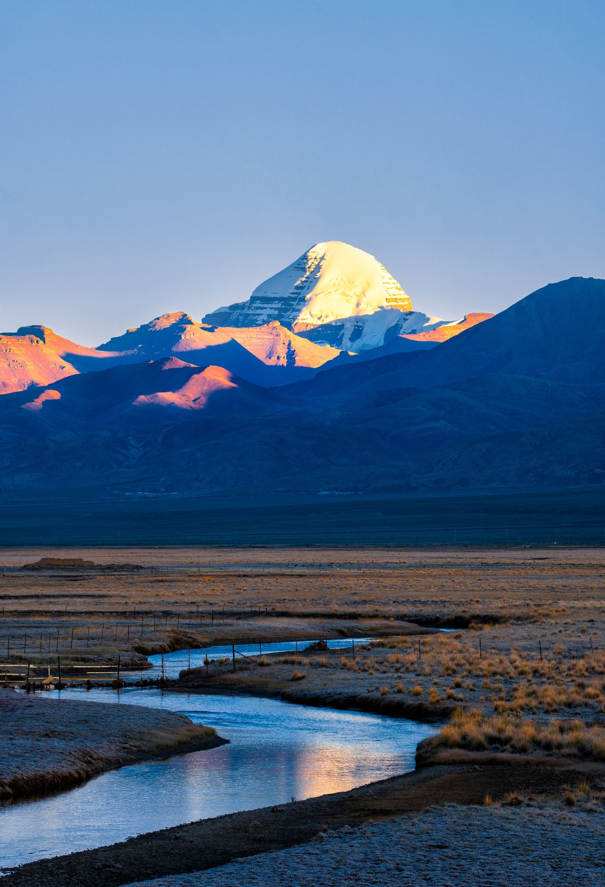 作为西藏人民心中的神山,冈仁波齐6656米的海拔全年都能观赏到日照金山,这份馈赠更显珍贵。拉昂措与玛旁雍错的湖水倒映着鎏金的山巅,齐乌寺和止热寺的视角则让神山的神秘与庄严扑面而来,经幡广场上,飘动的经幡与金山同框,成了信仰与自然的完美融合。