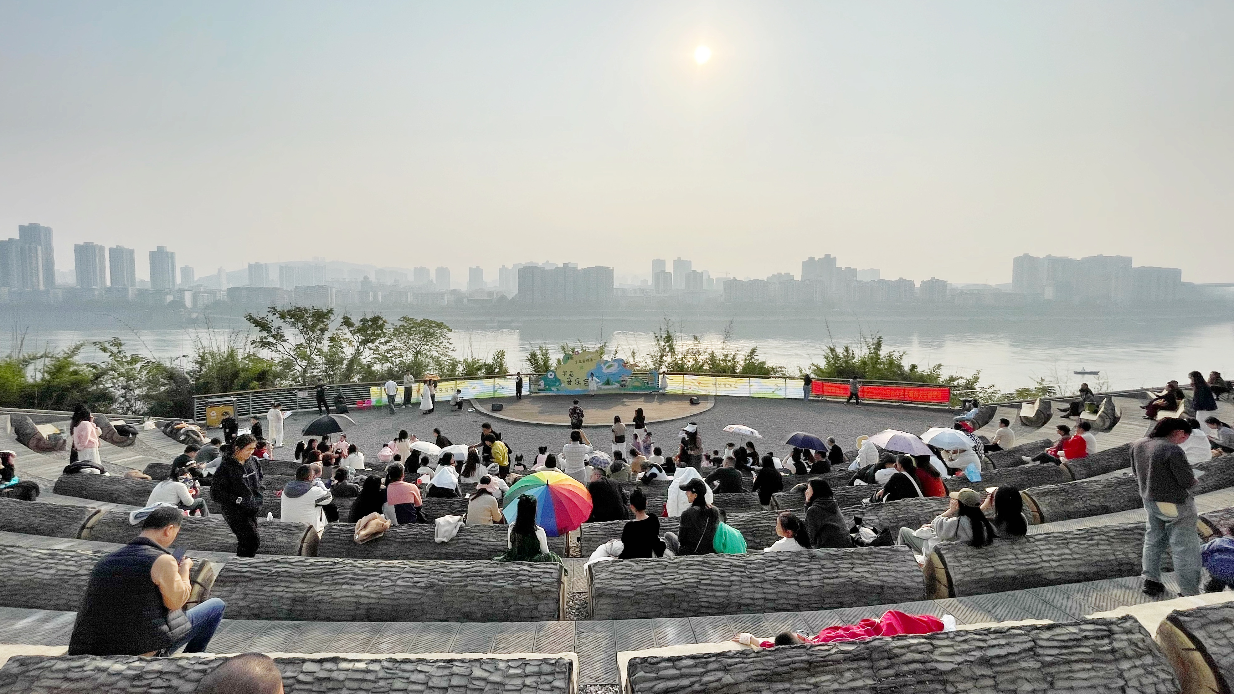 记者在现场看到,滨江步道旁,帐篷星罗棋布,三五好友,或围坐一起静静听歌,《茶花开了》《做了一个梦》等歌曲引得观众轻声跟唱,掌声阵阵,或沿江漫步赏景,聊家常诉心肠,勾勒出一幅充满欢声笑语的都市休闲画卷。