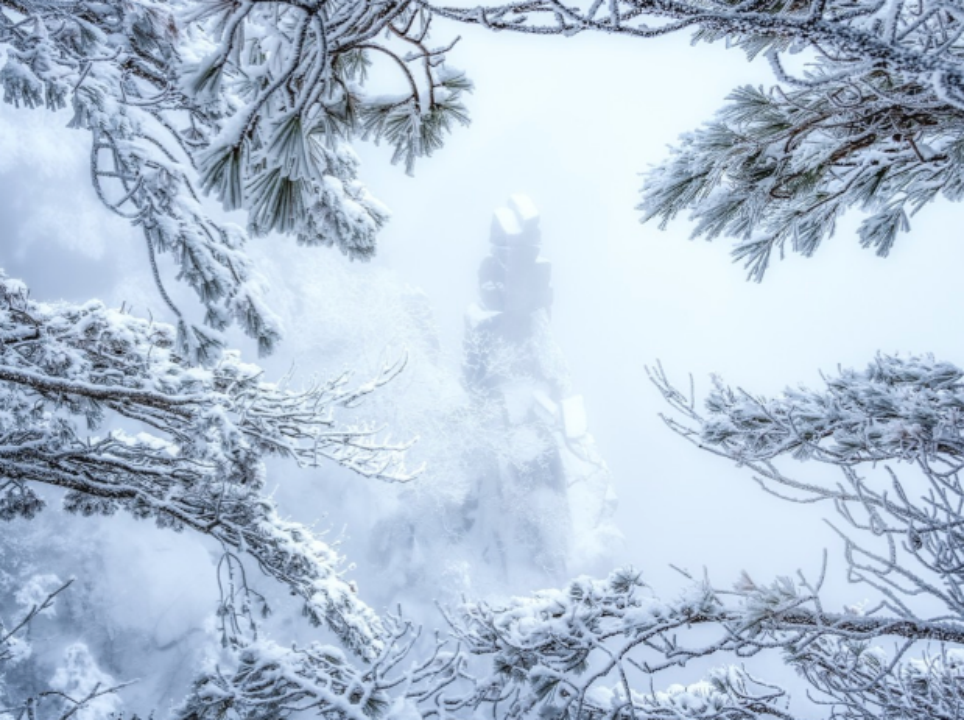 在云海的掩映下,山峰若隐若现,仿佛是天地间最美的诗篇。站在山顶,俯瞰群山,一片白雪皑皑的世界尽收眼底。此时的黄山,仿佛是一幅天然的水墨画,清雅而宁静,让人流连忘返。