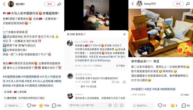 在小红书和 YouTube 上,越来越多的新加坡及马来西亚游客分享详尽的中国电商购物攻略。