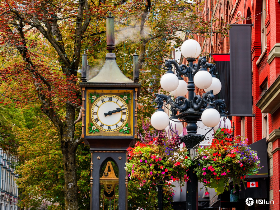 在历史悠久的盖斯镇,全年都有游客聚集在这座古董风格的蒸汽钟旁。