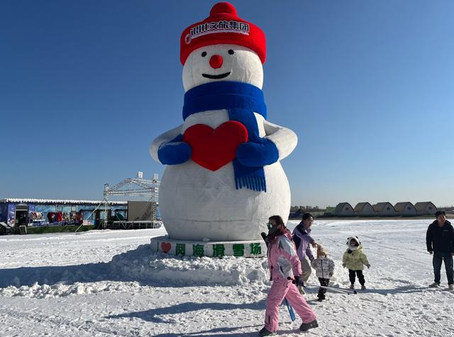 最引人注目的莫过于雪场内傲然矗立的巨型卡通雪人,高达十余米的身躯裹着洁白的“外衣”,圆滚滚的脑袋搭配灵动的眼睛,成为冬日里最吸睛的拍照打卡点。不少游客纷纷驻足,与这个“冰雪巨人”合影留念,手机快门声此起彼伏。“这么大的雪人太可爱了,朋友圈九宫格都装不下,必须先来一组打卡照!”来自吴忠的游客李艳丽兴奋地说。