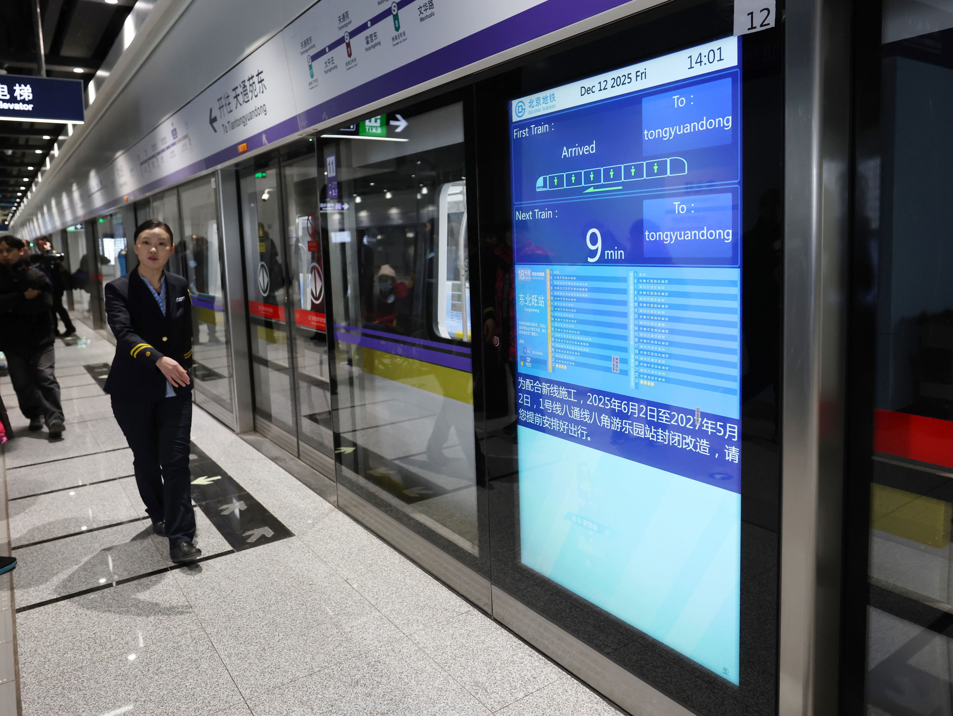 18号线的站台门综合信息屏可以实时显示列车时刻表信息。新京报记者 王贵彬 摄