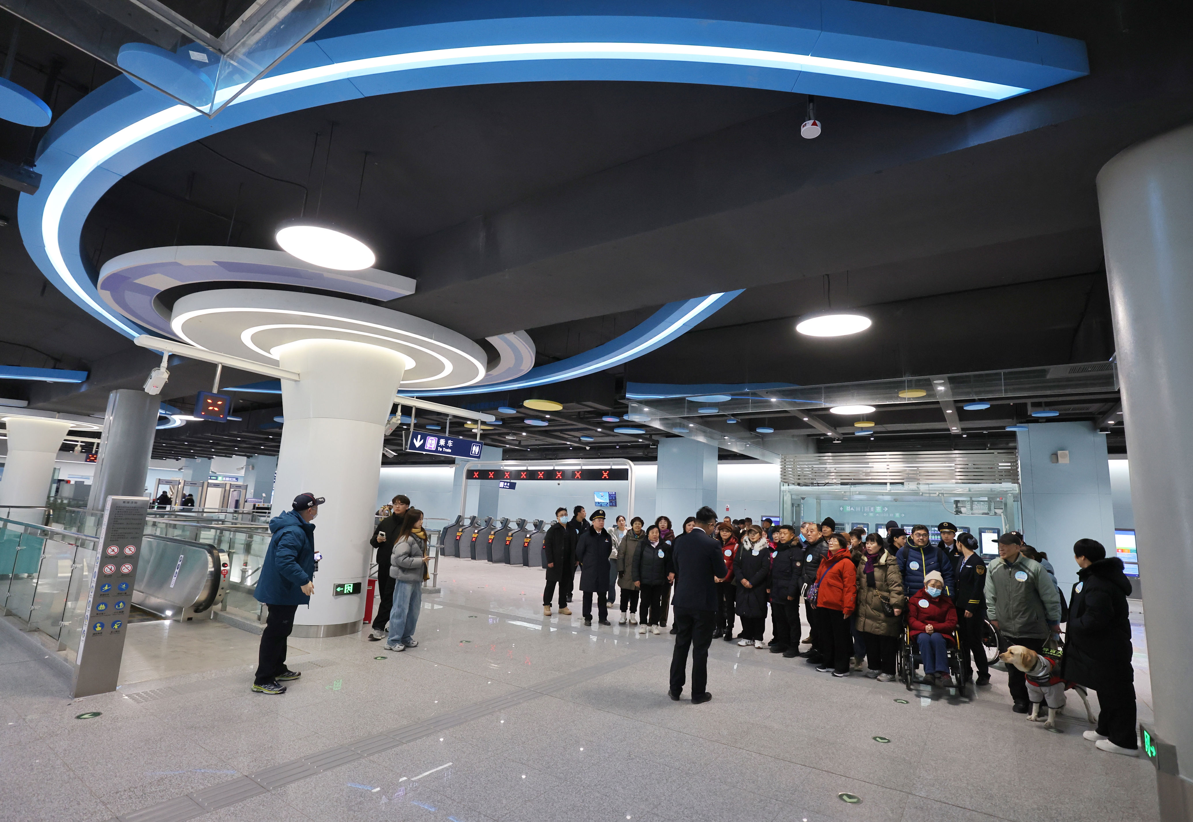 体验过地铁新线的无障碍服务设施后,在导盲犬陪伴下出行的视障乘客王先生觉得,新线的无障碍服务环境很好,盲道清晰,各项服务设施也很完善;轮椅乘客徐女士则点赞了“双向开门”的无障碍电梯,她表示,轮椅在电梯内转向比较费劲,这样双向开门的电梯能保障轮椅乘客直上、直下。