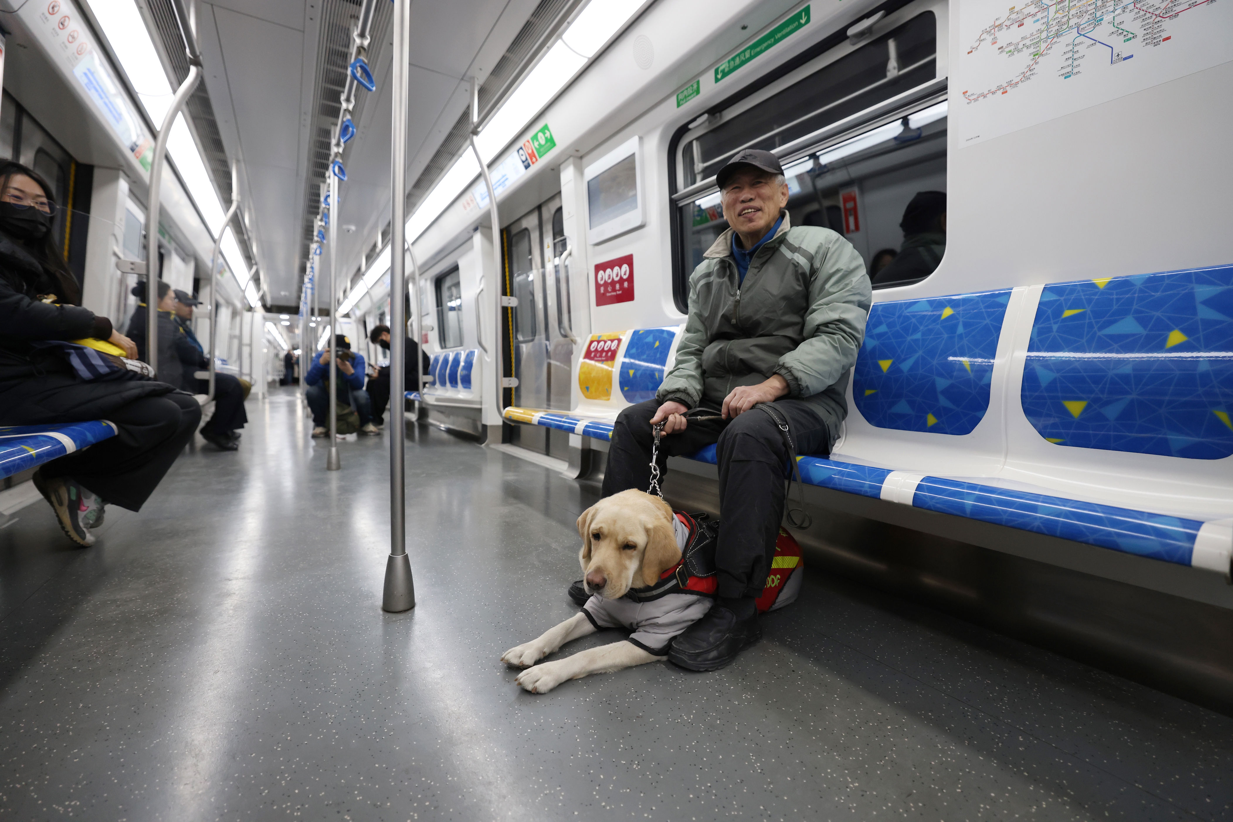 视障乘客王先生在导盲犬的陪伴下体验乘坐17号线。新京报记者 王贵彬 摄