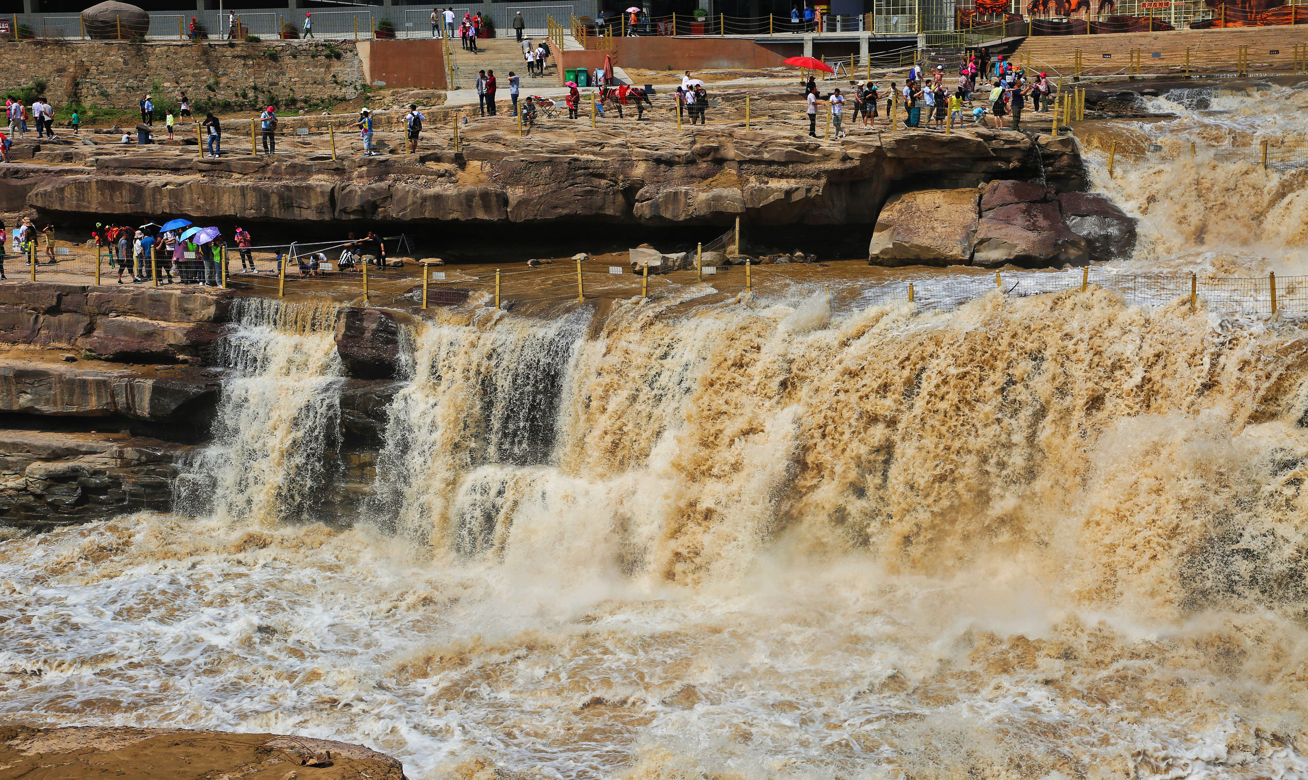气势磅礴的壶口瀑布是山西省和陕西省两省共有的景点,在黄河水量最大的时候,壶口瀑布波涛汹涌,激起一团团白色水雾和烟云,现场观看,更是巍巍壮观!