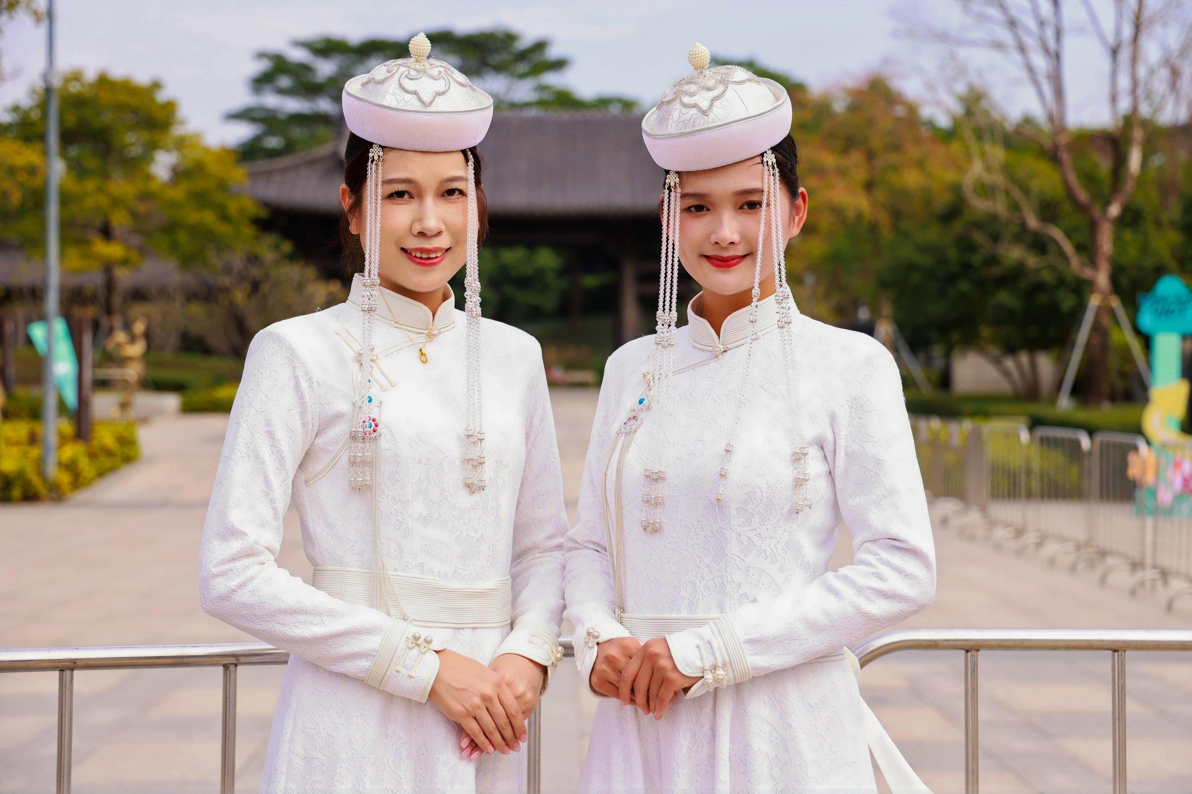 马头琴的悠扬琴音便回荡在馆内,拉开草原序曲。静态的“文旅非遗市集”中,昭君主题文创、蒙古族刺绣“布丝瑰”、草原奶食与烧麦等陈设在岭南园林的景致中,形成视觉与味觉上的巧妙呼应。